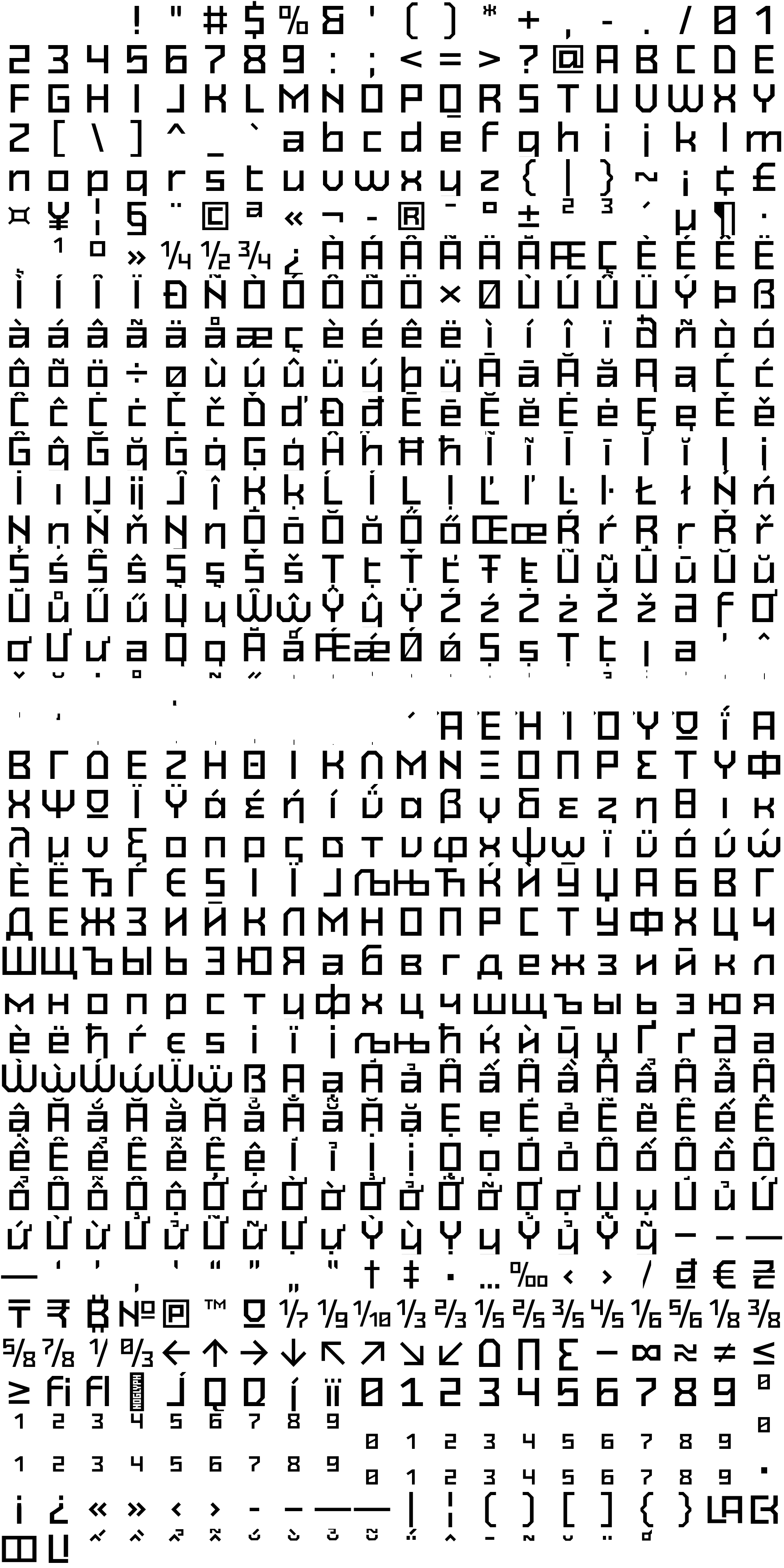 Due to the nature of thumbs' generation process, some of the glyphs in the glyph map may appear cropped.