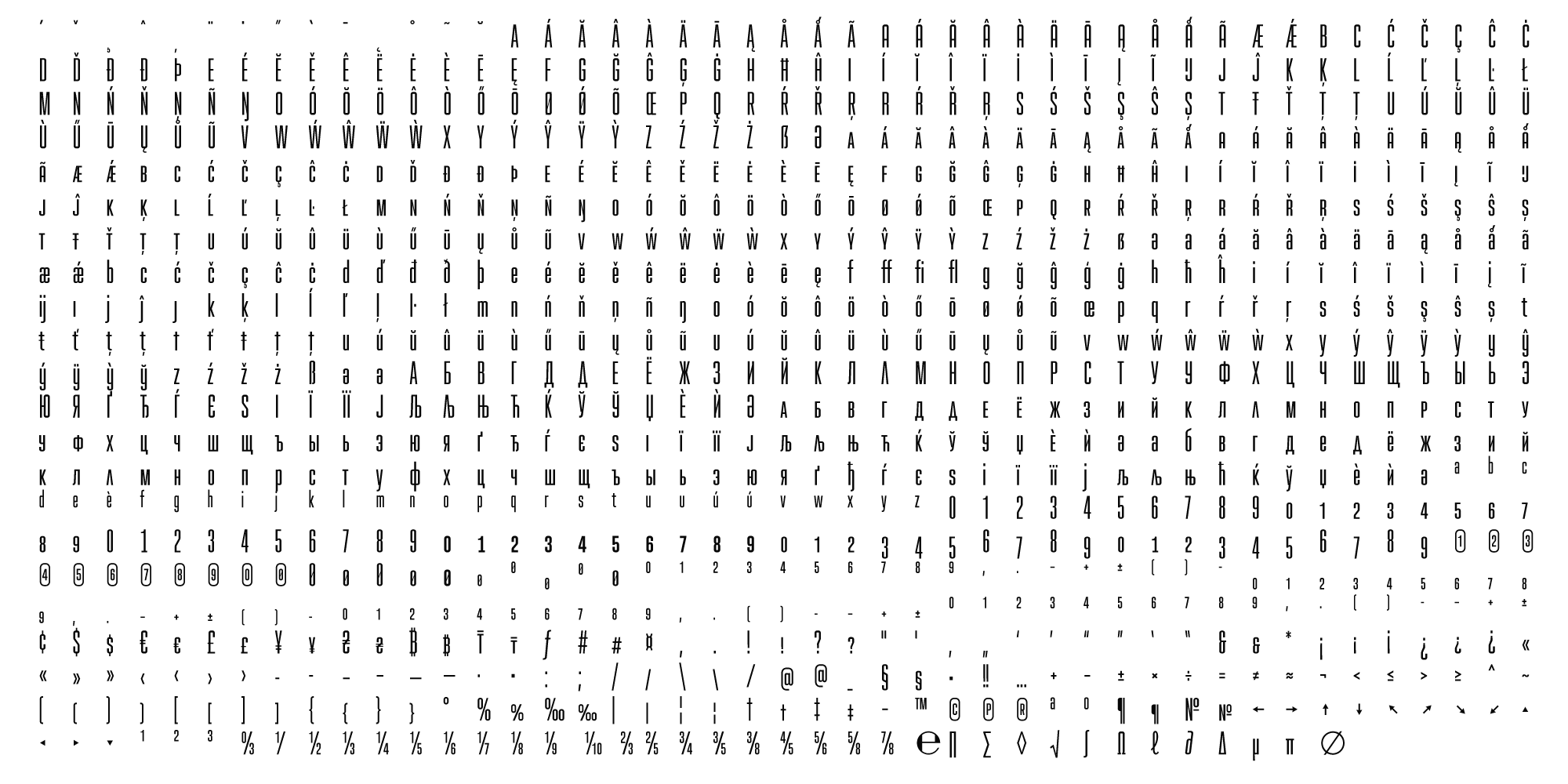 It comes in 8 weights, with 5 width variations each, all accompanied with respective obliques - making 80 styles altogether.