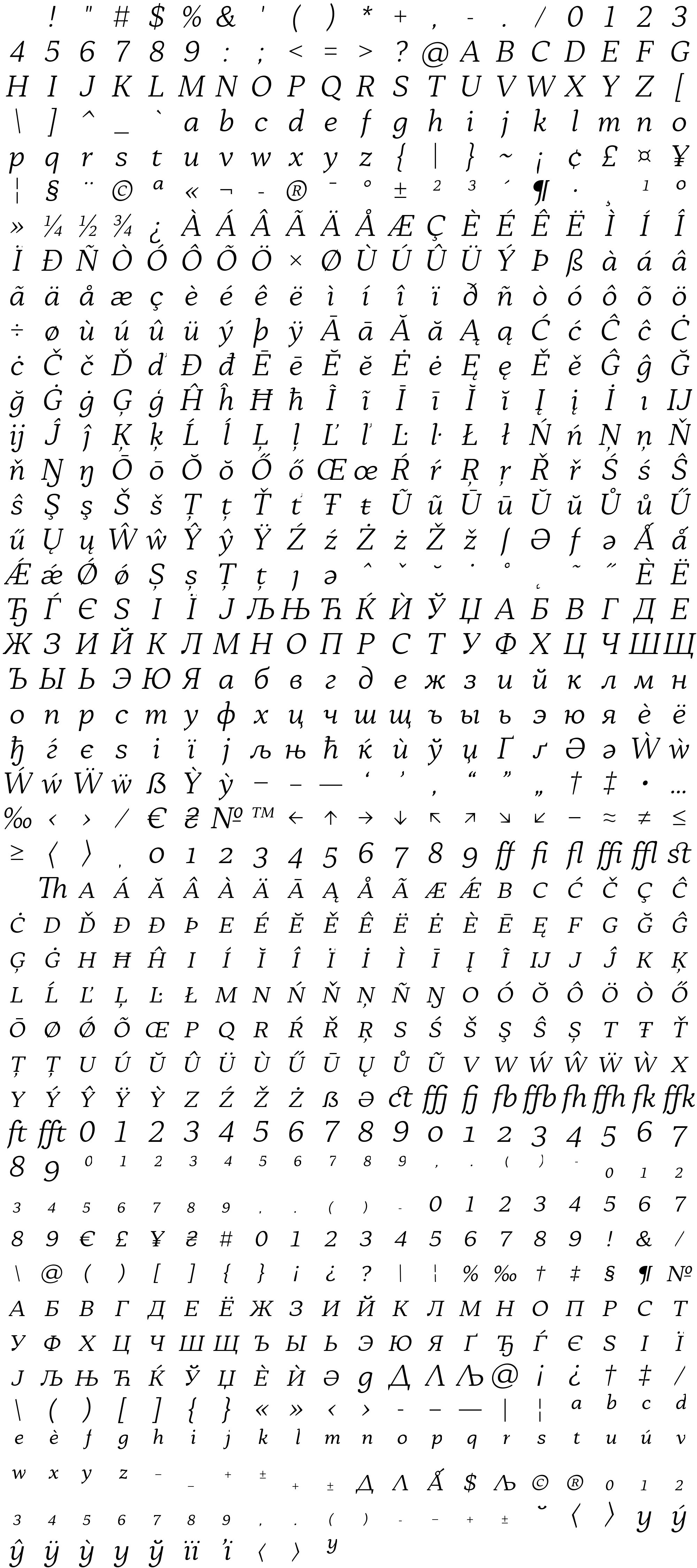 Due to the nature of thumbs' generation process, some of the glyphs in the glyph map may appear cropped.